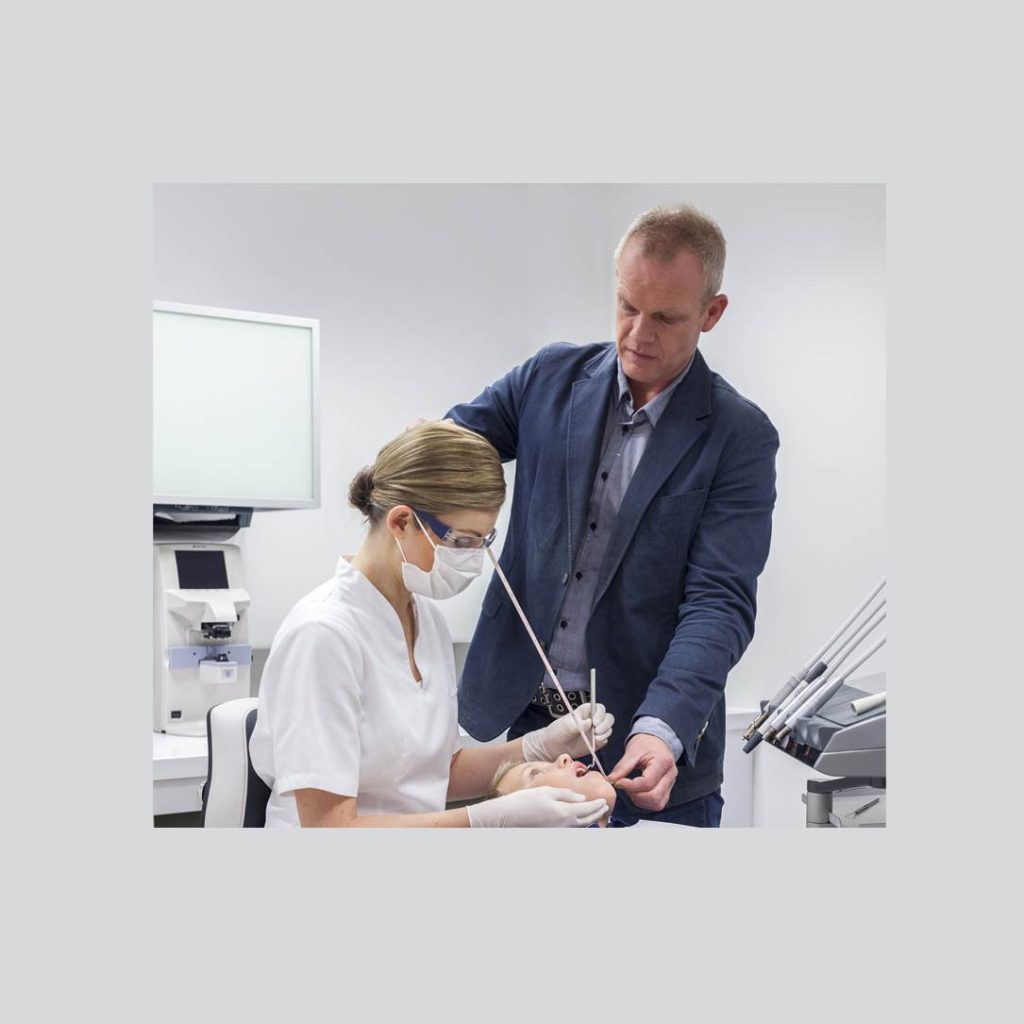 Your working distance is the space between your eyes and the work area. The right distance prevents crouched, uncomfortable positions, reducing the risk of chronic back and neck pain. Even a few centimeters off can impact comfort and health. With ExamVision refractive loupes, your working distance is individually measured and fitted to your height and tools for optimal results.