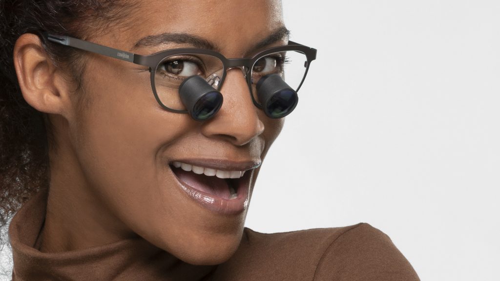 The Galilean Essential loupe is a “simple”, lightweight Galilean lens system ensuring a wide field of view and good depth of field, which allows you freedom of movement, creating less tension in the neck and back.